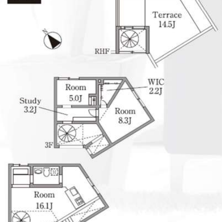 お部屋の間取りはそれぞれですが、どの部屋もプライバシーを配慮しつつ自由で独創的な間取りが魅力的。