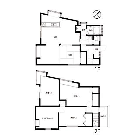 間取りは1階にLDKと和室、そして2階に洋室が3部屋+サービスルームという4SLDK。