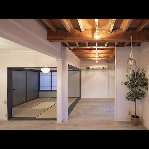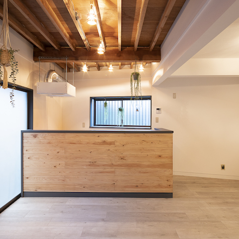 しかも2021年8月に内装フルリフォームされており、キッチンや天井の梁現しなど木造戸建ての温かみを感じる空間に仕上がっています。