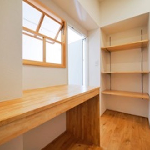 玄関横にはリモートワークスペースとしても利用可能なWIC兼書斎を設置。