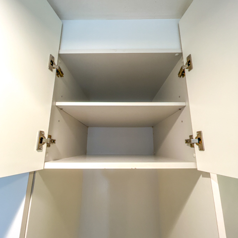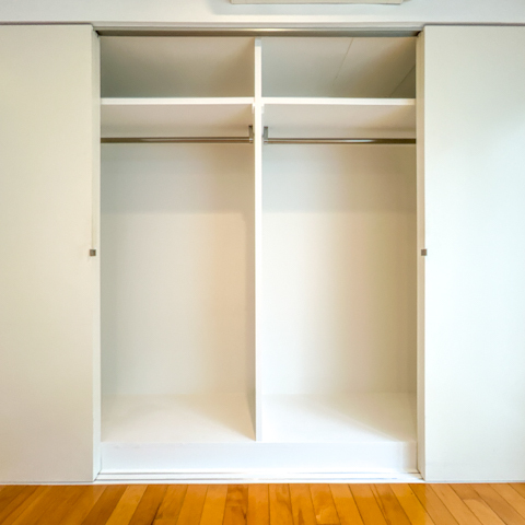 中央で二つに仕切られた左右それぞれにハンガーパイプと棚が設けられています。