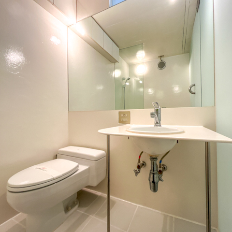 明るい照明が水回りのスタイリッシュさを感じさせてくれます。