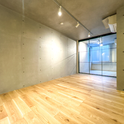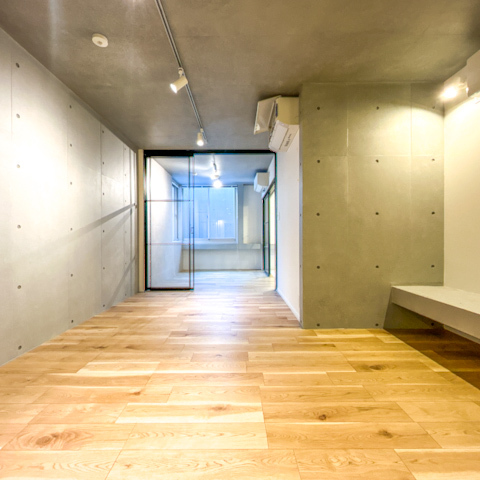 室内は打ち放しコンクリートの壁と天井が印象的で、