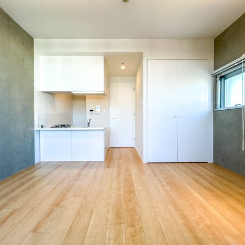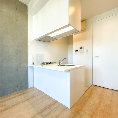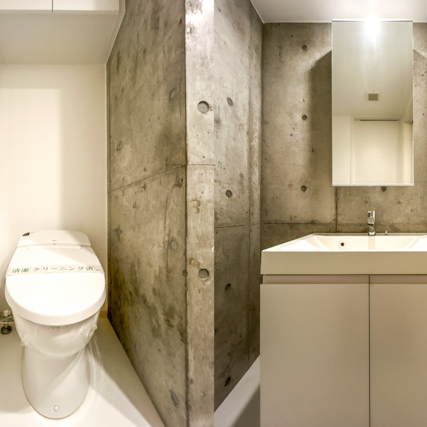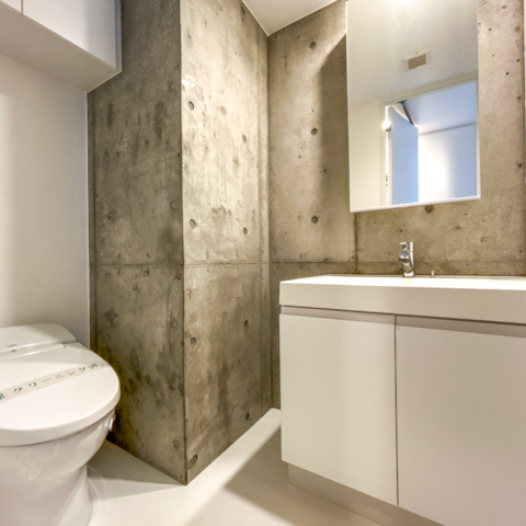 コンクリートのアクセントが映えるホテルライクな空間に仕上げられており、清潔感とデザイン性を両立。
