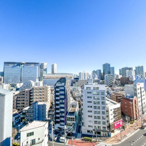 バルコニーからは目黒エリアの街並みを一望でき、朝は澄んだ空気の中でコーヒーを楽しみ、