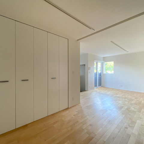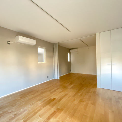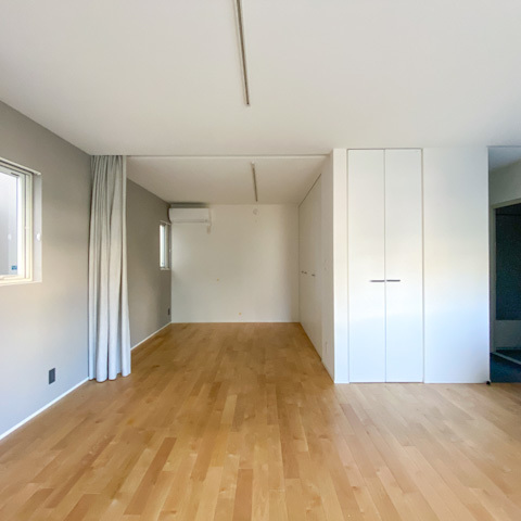 カーテンを開けっぱなしにすると広いワンルームの様なつくり。