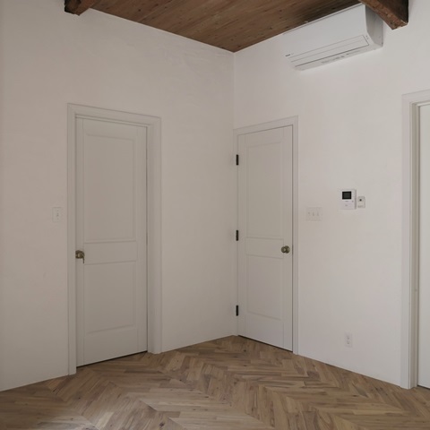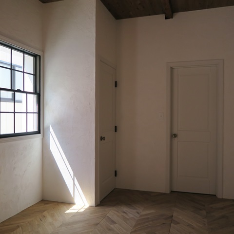 例えば床は無垢材をヘリンボーンに貼り、スイッチ類もUS式。