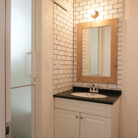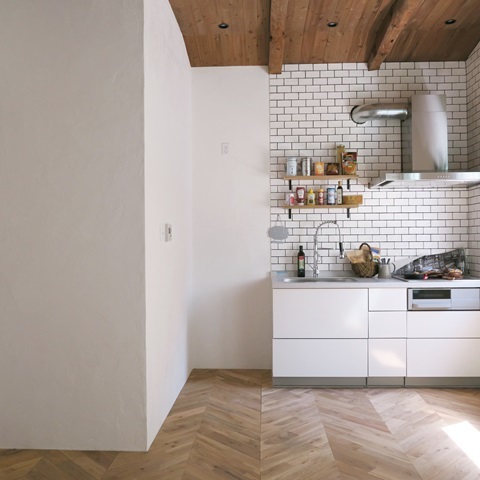 キッチンに貼られたタイルも部屋の雰囲気に合っていました。
