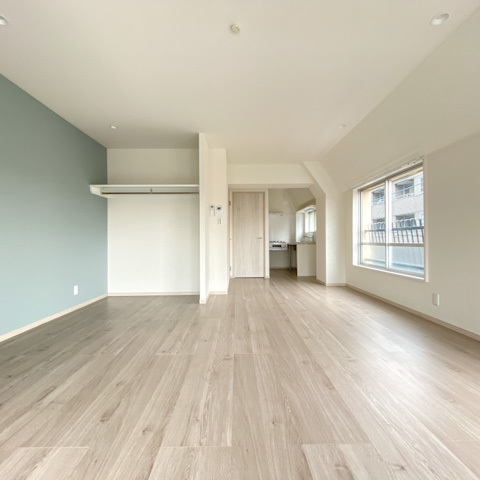 そんな三鷹の、商店街を抜けたところに今回の物件がありました。部屋は41平米のワンルーム。これだけ広いので、開放感抜群です!水色の壁紙と、薄めのフローリングで統一感もあって、家具を置くと更にいい部屋になる予感。