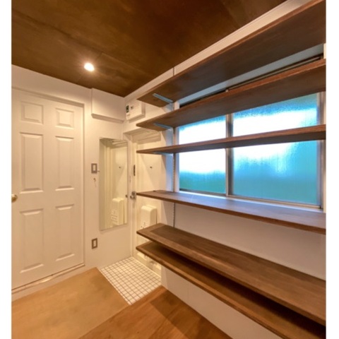 キッチン後ろの収納もかなり広めなので、調理器具もたくさん収納できます。
