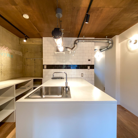 キッチン下はオープンスペースなので、ここに収納家具を入れ込むこともできます。