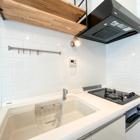 クロスとキッチンタイルは清潔感のある白を使用。