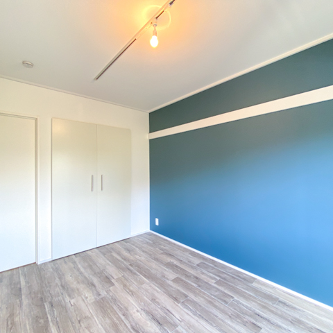 リビングの壁はブルーと暮らしに少し色がある良い感じの部屋に仕上がりました。