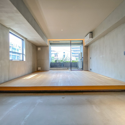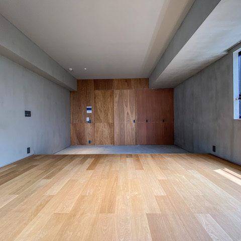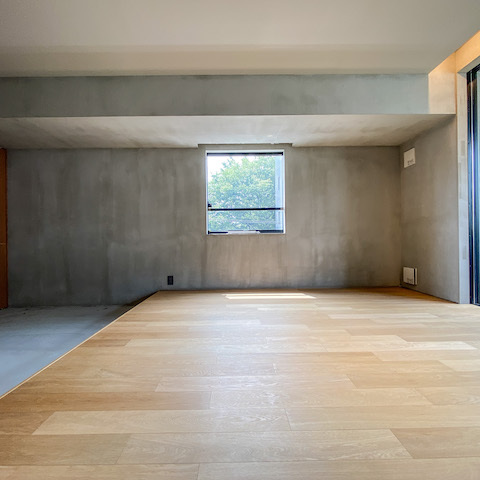 室内は、無垢フローリング・土間・バルコニーの3要素で構成。
