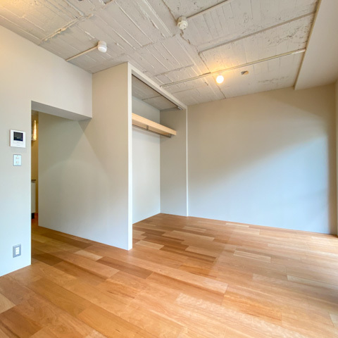 ゆとりのある1Kは、ブラックチェリーの無垢床が広がり、
