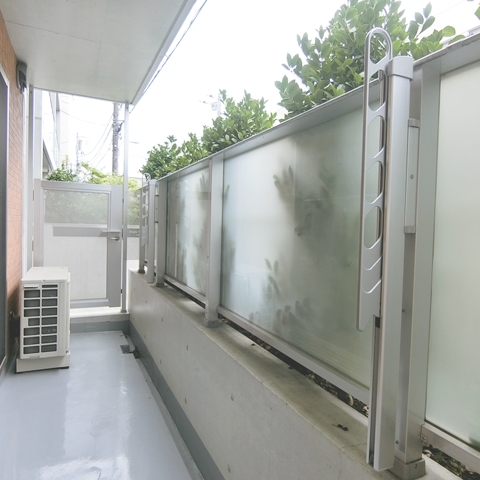 1階ですがバルコニーの前の塀とと植栽で圧迫感なくプライバシーも確保。
