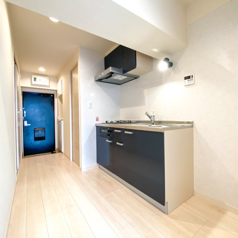約10帖の洋室と、廊下に離れたキッチン。