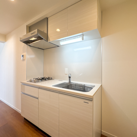 キッチンは壁付けのコンパクトなレイアウト。