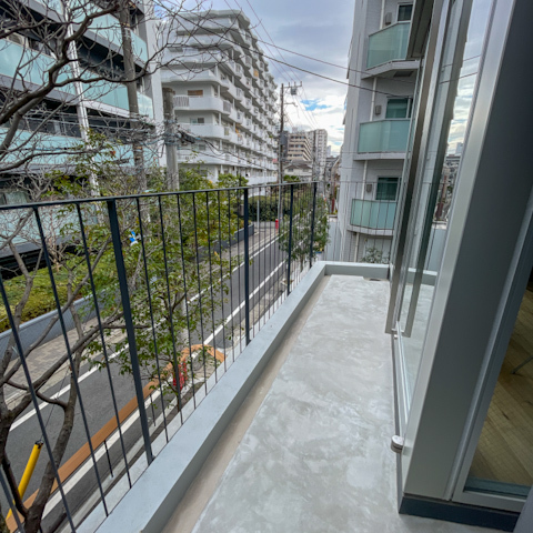 お部屋の奥に進むと、L字型のバルコニーが。