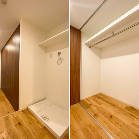 洗濯機置き場の向かいには水回りがあるのも動線が考えられていて嬉しいポイント。