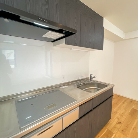 キッチンは広々としたシステムキッチン。IHコンロなのでお手入れもしやすそうです。