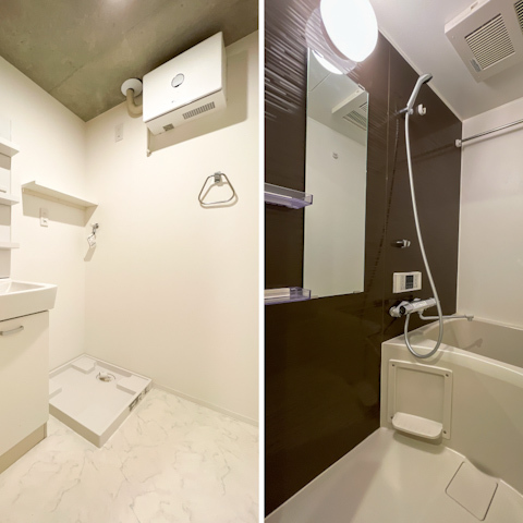 収納の奥には水回りがまとまっていて、脱衣所も広めにとられていました。