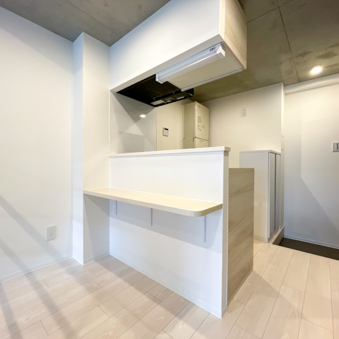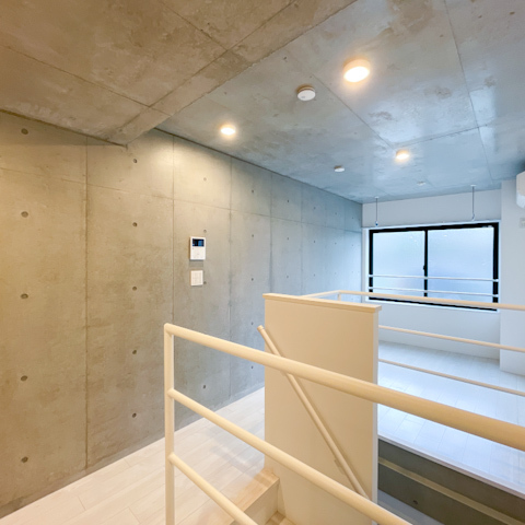 天井と一部壁面は打ちっぱなしコンクリートがあしらわれており