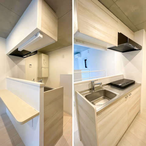キッチンには置き型の2口IHコンロ付で