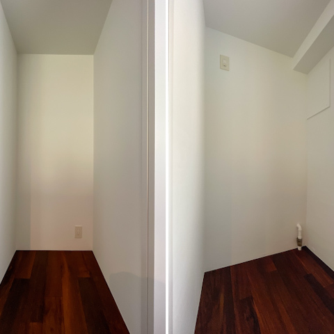 冷蔵庫や洗濯機はすべて収納内に収まり、生活感をすっきり隠せます。