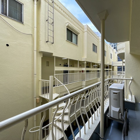 二面採光ですが、ベランダのある大窓は、建物の内部に面しているため、