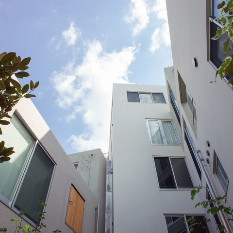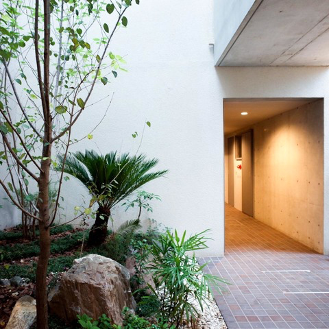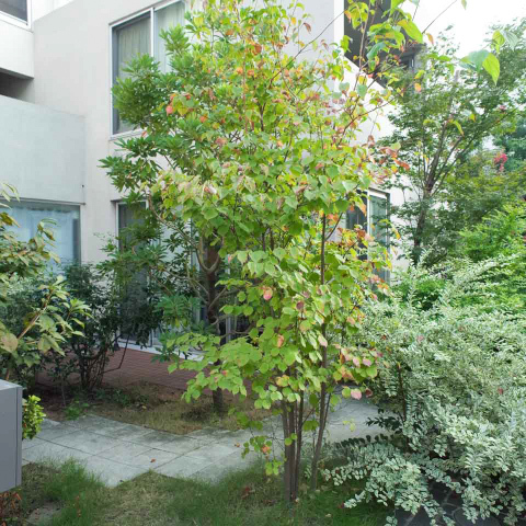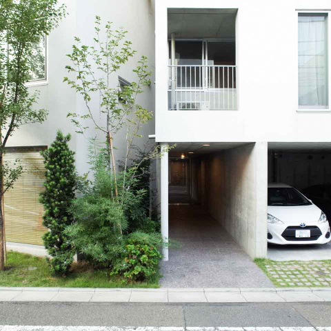 シンプルながらセンスが光る外観。共用部には緑も多く、
