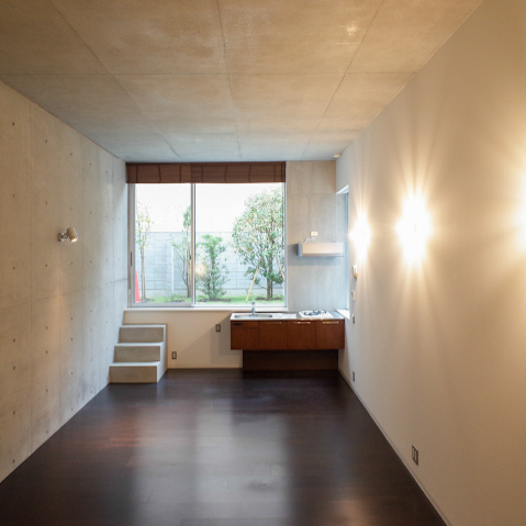 内装はダークトーンのフローリングとRC打ちっぱなしの壁が調和し、