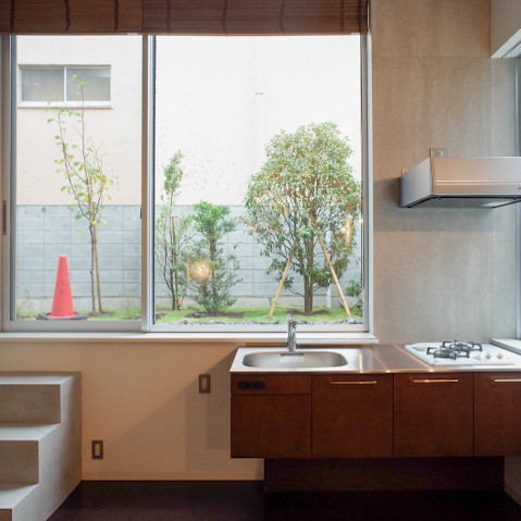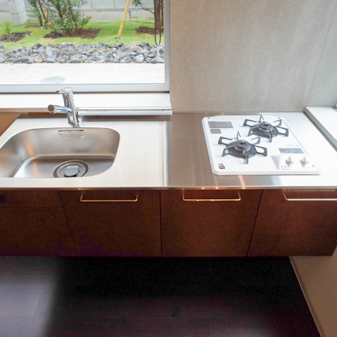 さらにキッチンがテラス側に配置されているので、光や景色を感じながら料理できる贅沢さも。