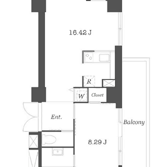 玄関横にはトイレがあり、手前にLDK、奥に洋室がある間取り構成です。
