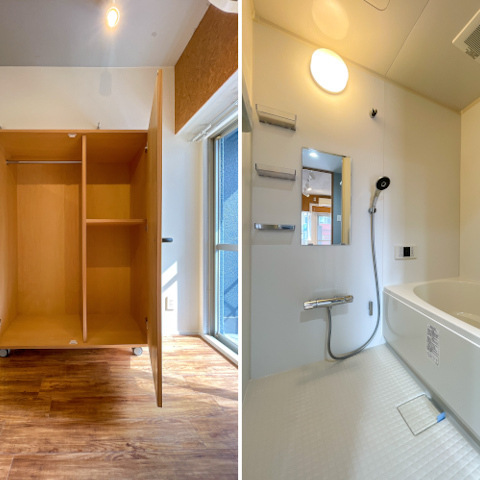 独立洗面台と浴室がバランスよく配置されています。