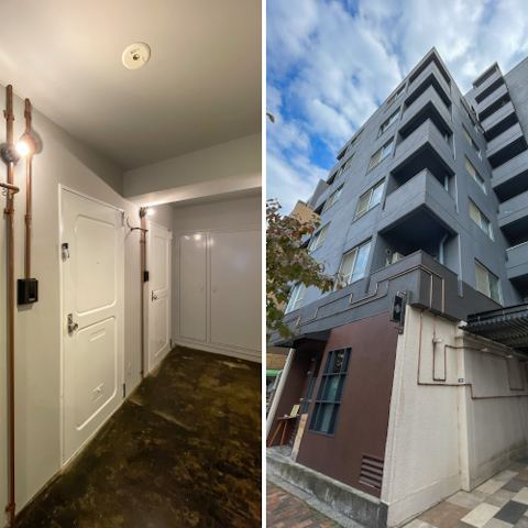建物の外壁には名前の由来にもなった“パイプ”が巡らされ、