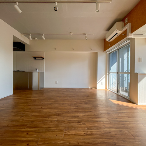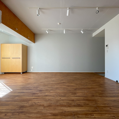南向きの大きな窓から光が差し込み、天井も高く開放的。
