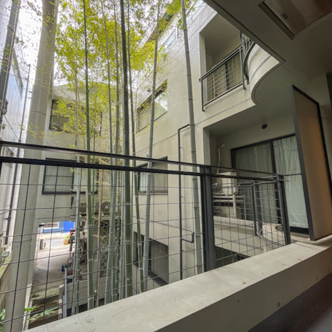中庭には竹林が植えられ、都心でありながらも静けさを感じる佇まいです。