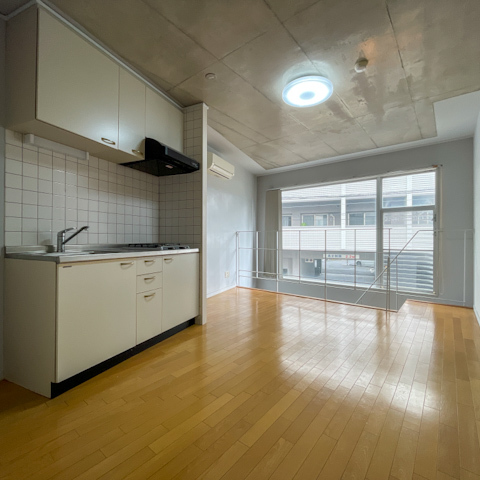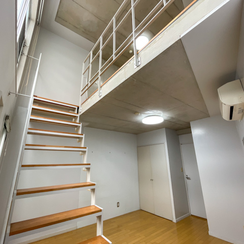 お部屋は2階と1階のメゾネット構造になった1LDKタイプ。