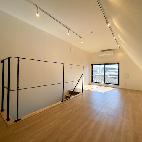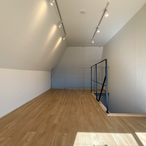 一部が吹き抜けになっており、天井の高さと縦の広がりが心地よい空間です。