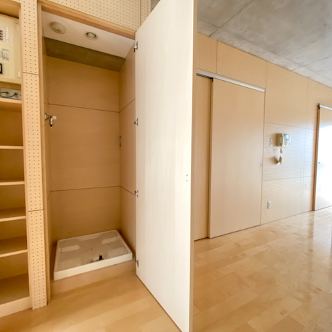 水回り、キッチンは壁側にぴったりとくっついて必要のないときは扉で隠すことができます。