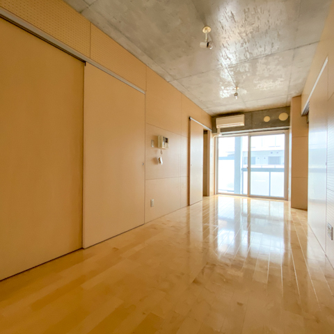 室内の床は明るめのツヤツヤのフローリングで
