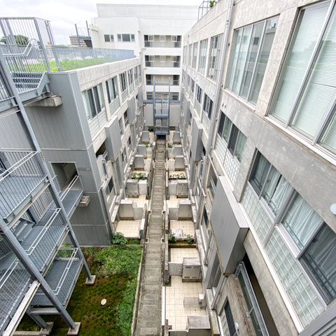 中庭から見上げる景色は圧巻です。