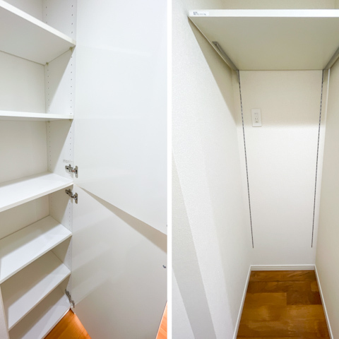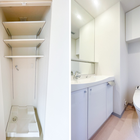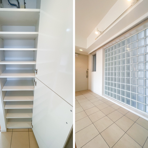 キッチン周りや洗濯機置き場、玄関にもしっかり収納がありました。