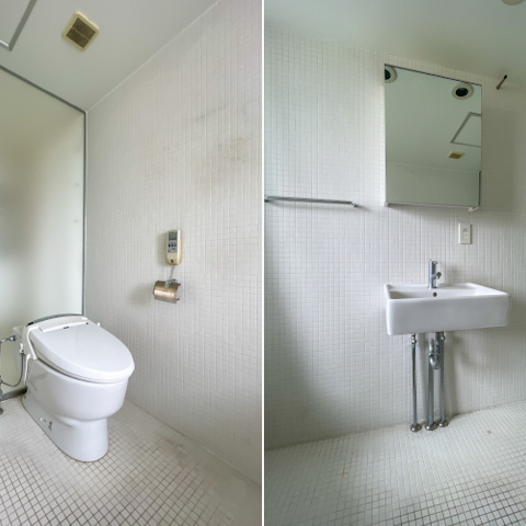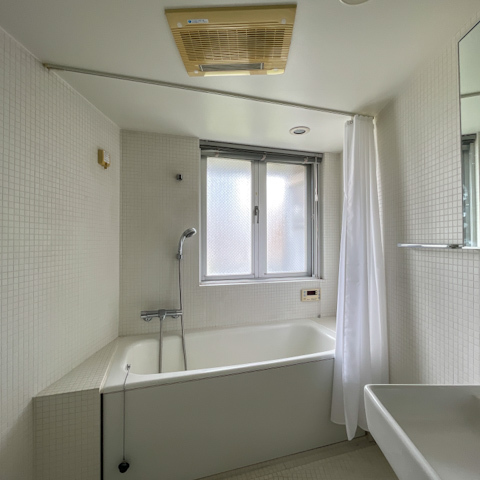 タイル張りで雰囲気もよくて、さらにドラム式洗濯乾燥機付き。ここ、かなりうれしい。