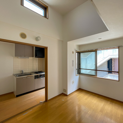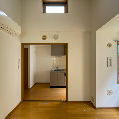 6帖ほどのコンパクトさだけど、この高さのおかげで窮屈さは感じにくいのもポイント。