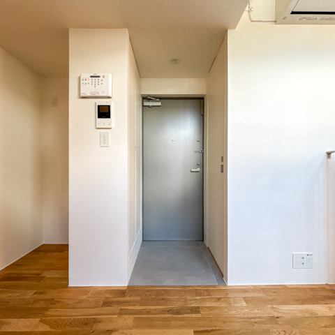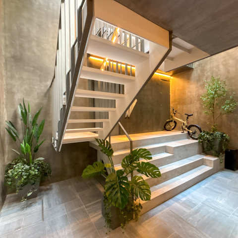 建物は2021年築。デザイナーズらしい建物に入ると、エントランスもホテルっぽい空気で素敵でした。