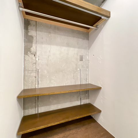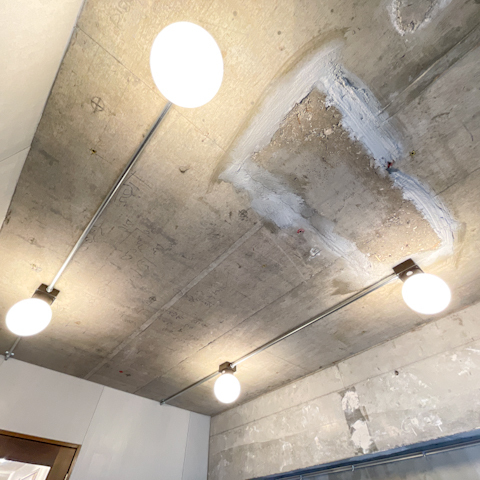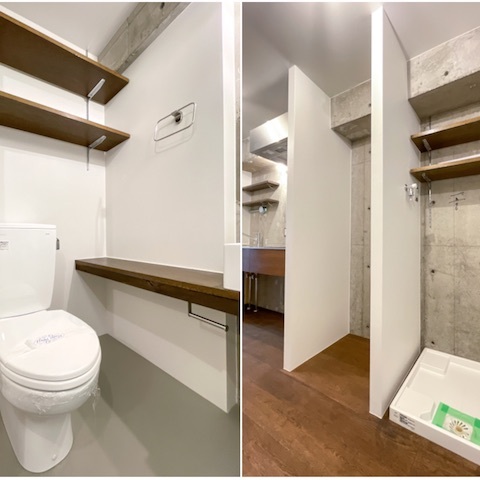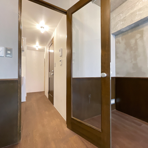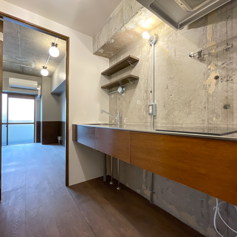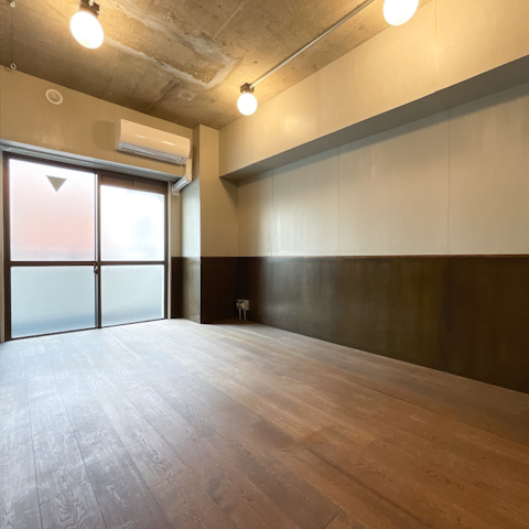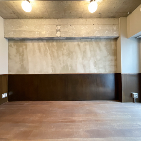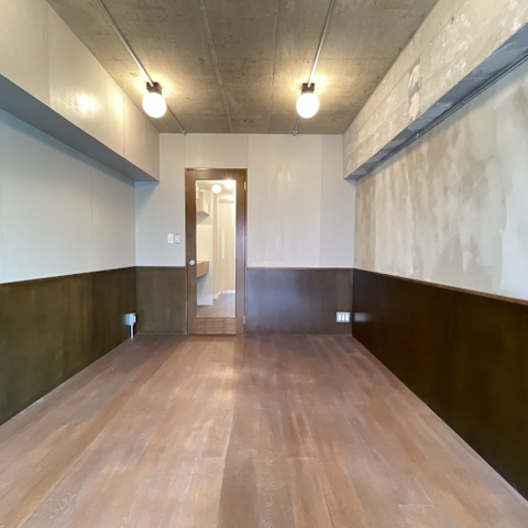 まず印象的なのは洋室のコンクリ×ブラウンの色味。
