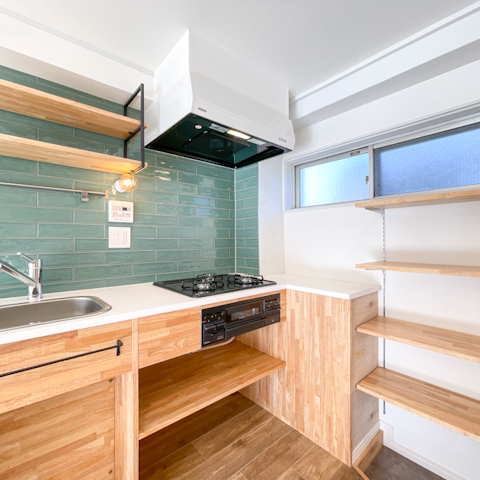 キッチンはタイルを使った可愛らしい見た目になっております。