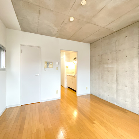 コンクリートでまとめたクールなちょこっと広めのワンルーム